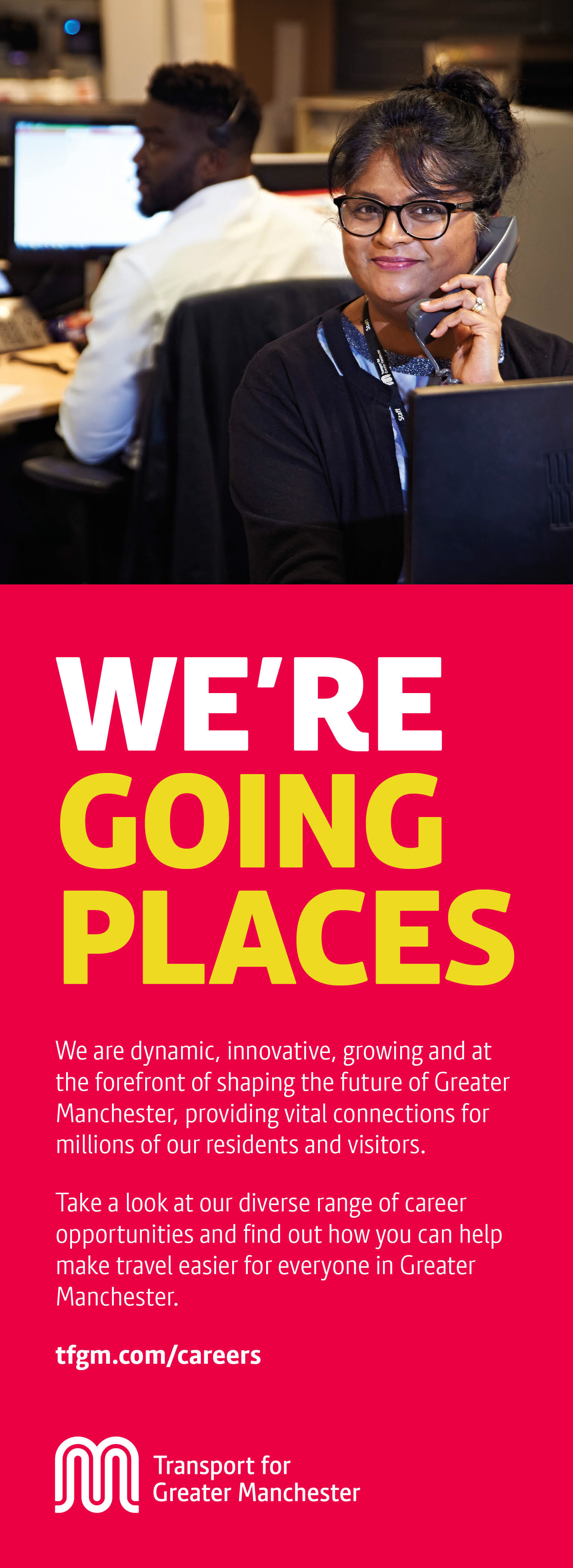 From Route 1 they loved the creative headline which was a play on words with what the organisation is all about, as well as the use of the striking photography showing the mix of roles. From Route 2 they liked the use of colour that showed the diverse nature of the work and roles at TfGM but also reflected the diversity in the current and future workforce.
